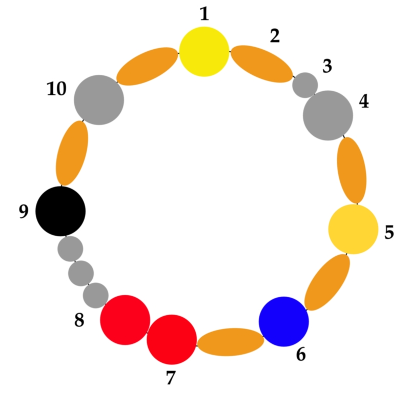 Die Perlen im Uhrzeigersinn: